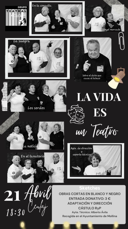 El CEULAJ acogió durante la tarde del 21 de abril al grupo Las Acacias, una asociación teatral que ofreció a su público una jornada repleta de actuaciones “en blanco y negro”. Bajo el lema #LaVidaEsUnTeatro, este grupo de la tercera edad amante de las artes escénicas logró llenar el aforo de nuestro salón de teatro para interpretar obras como "Los sordos", "La suegra", "En el tanatorio", "En la consulta", entre otras.
