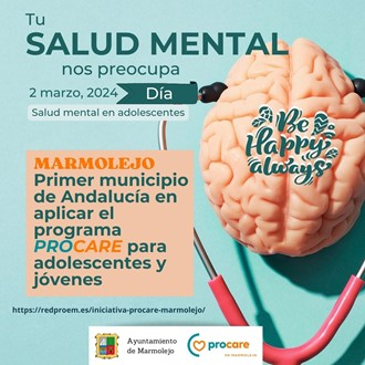 Durante los cursos escolares 2023/2024 y 2024/2025, el municipio de Marmolejo ha impulsado el desarrollo del programa PROCARE, una intervención pionera centrada en la salud mental y el bienestar emocional de la población adolescente, concretamente del alumnado de entre 12 y 18 años. Esta iniciativa, liderada por el Ayuntamiento de Marmolejo en colaboración con los centros educativos locales y profesionales del ámbito psicosocial, nace como respuesta a una preocupación creciente: la necesidad de atender de forma específica y estructurada la salud mental de los y las jóvenes en un contexto cada vez más complejo y desafiante.